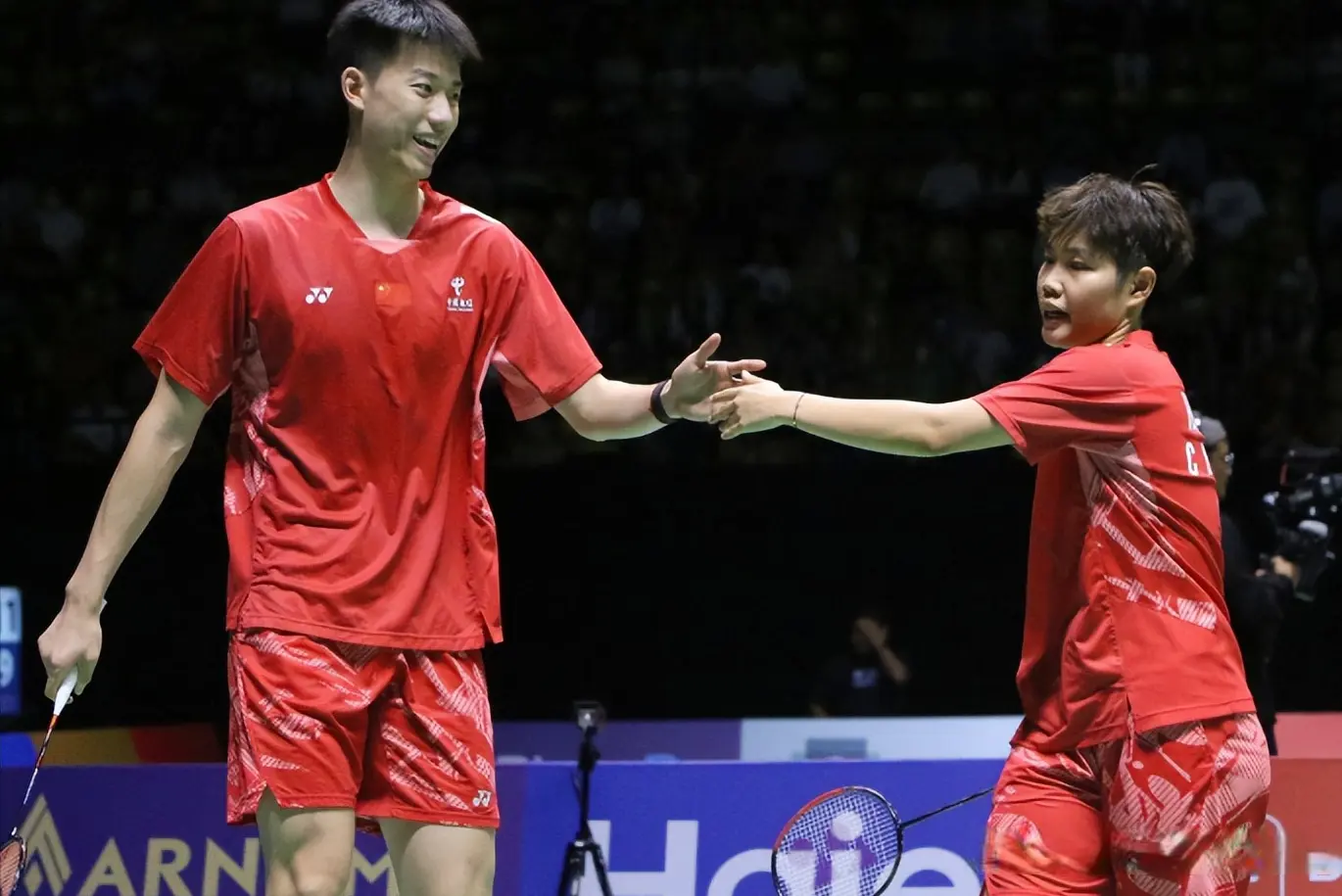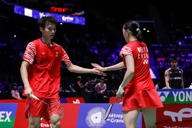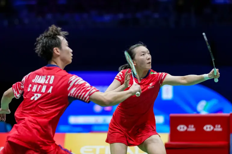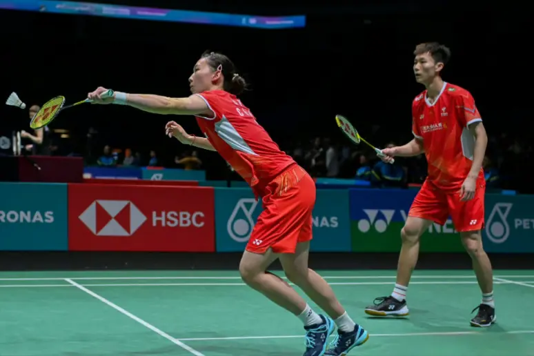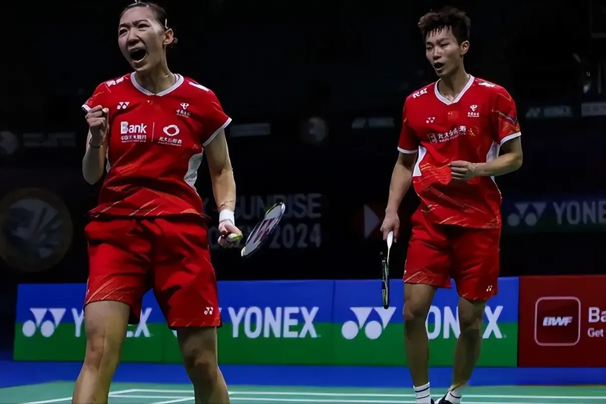 混双项目中,冯彦哲、黄东萍的胜利体现了网前控制与后场进攻的完美结合。