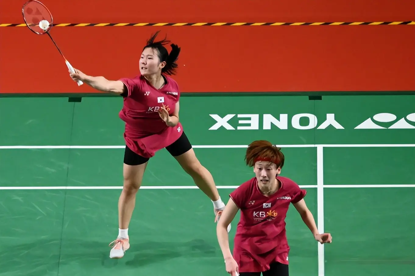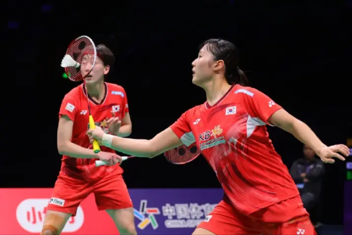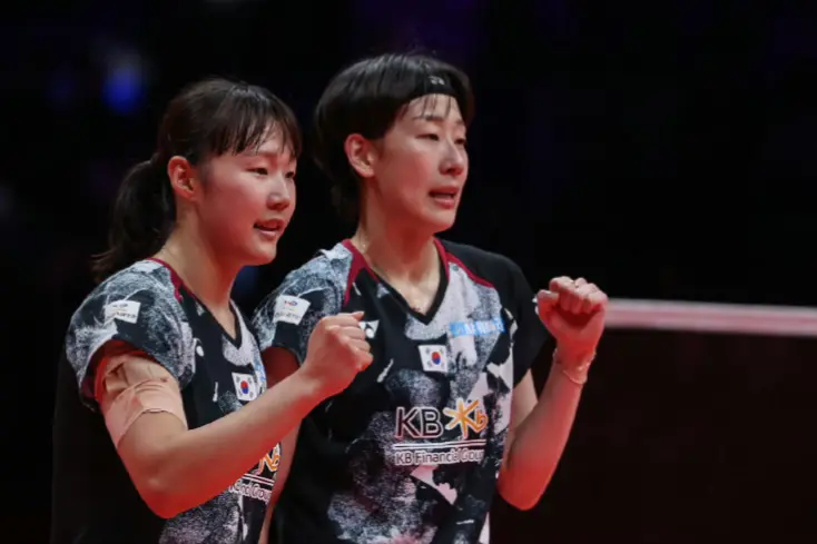 韩国组合白荷娜、李绍希在先失一局的情况下,逆转战胜同胞组合金慧贞、孔熙容。