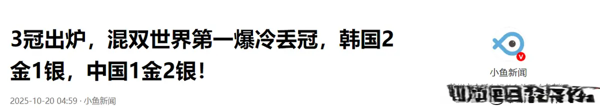 小鱼新闻——3冠出炉,混双世界第一爆冷丢冠,韩国2金1银,中国1金2银!