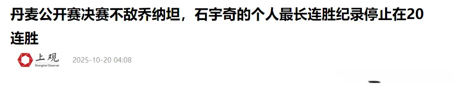 上观新闻——丹麦公开赛决赛不敌乔纳坦,石宇奇的个人最长连胜纪录停止在20连胜
